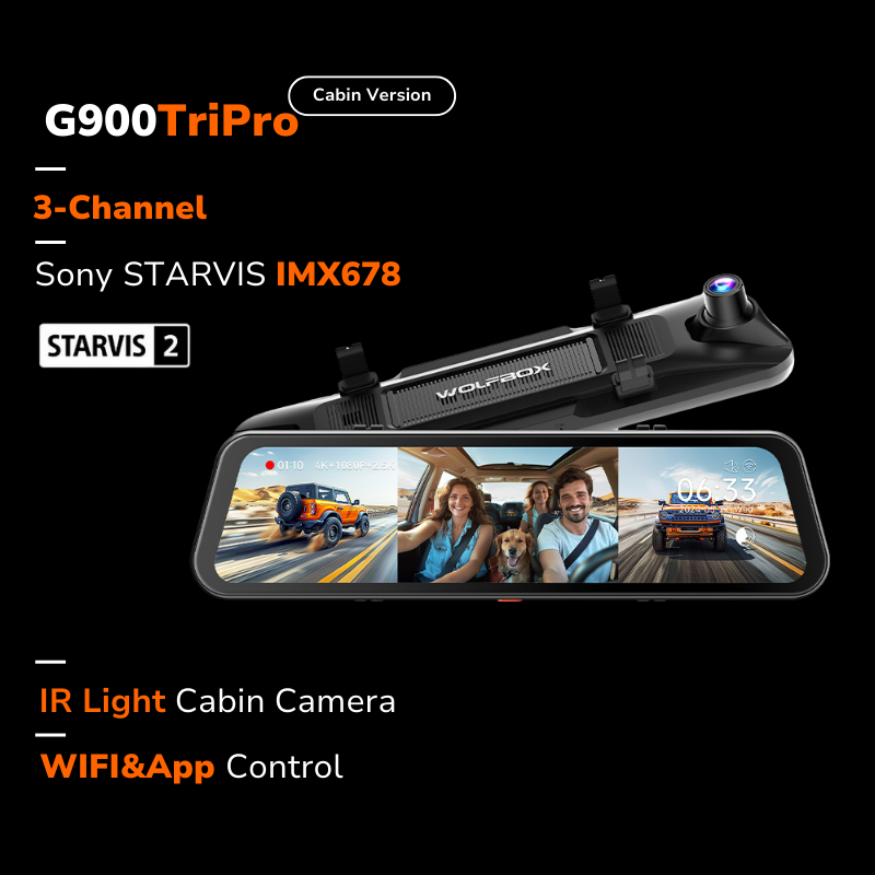 Wolfbox G840S mirror camera with a 12-inch wide mirror is an excellent car dashcam for recording your journey.
