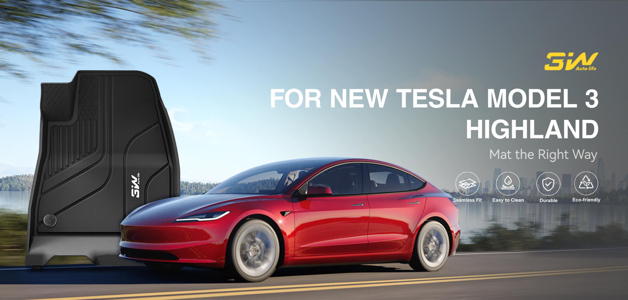 3W Custom Car Floor Mats All Weather Floor Liners, Boot Liners and Storage Liner for 2024 New Model 3 Highland RHD