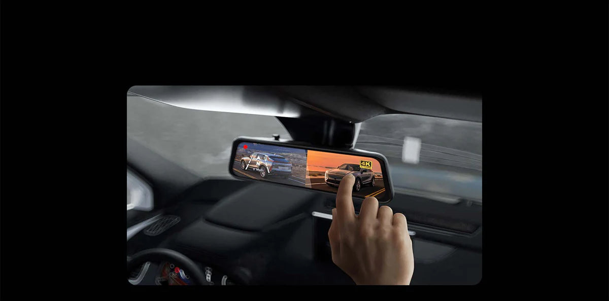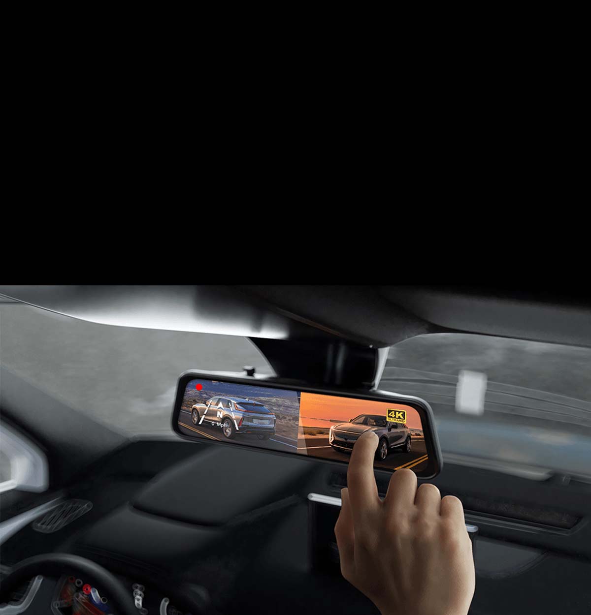 Get the ultimate driving experience with G900 4K+2.5K dashcam featuring a large touchscreen display and rear view mirror cameras.