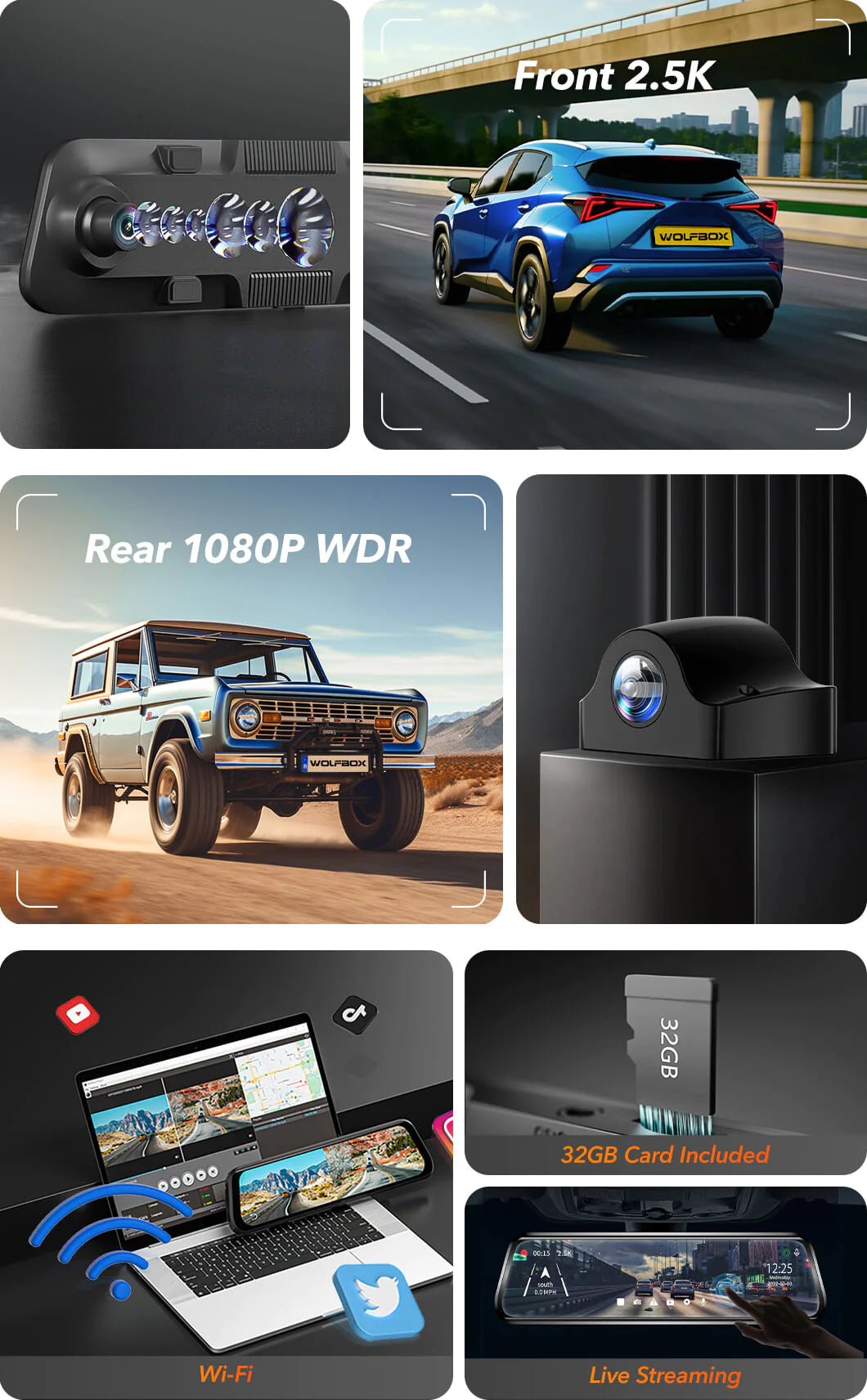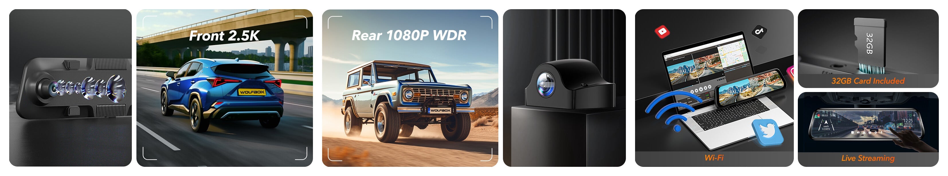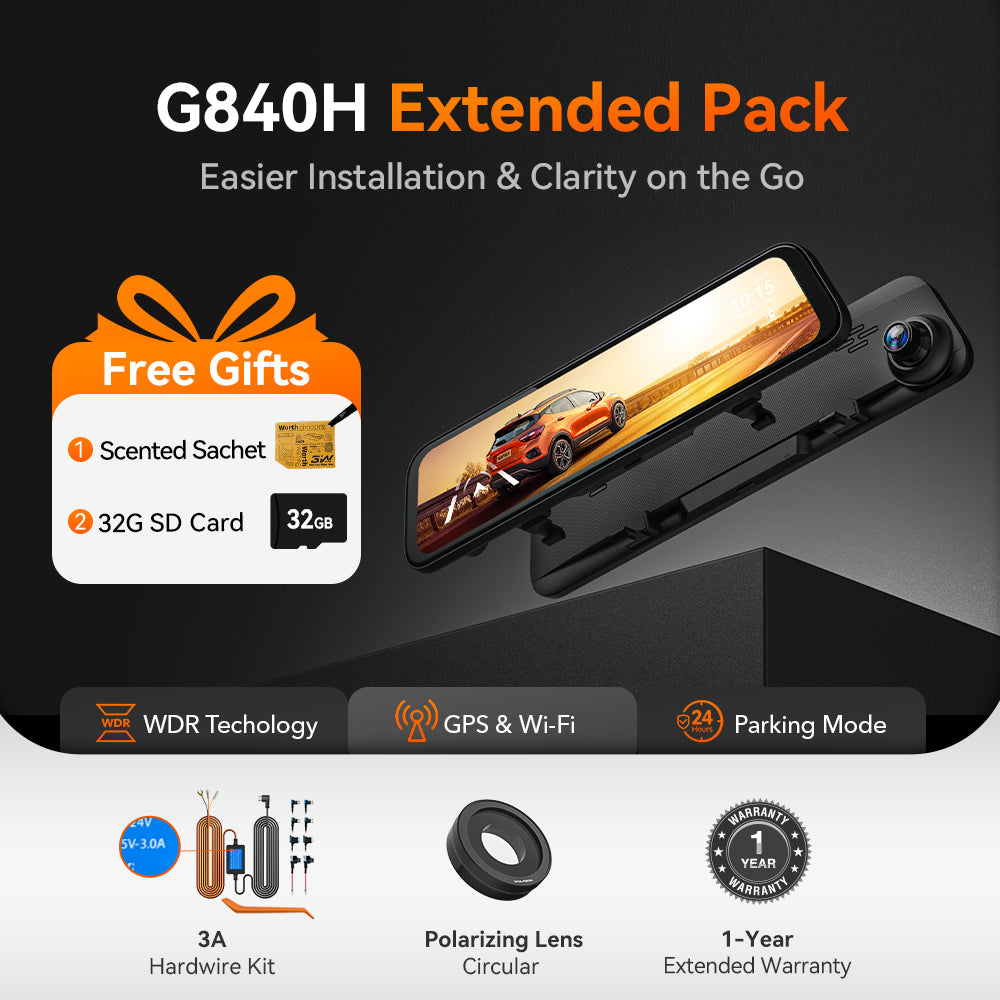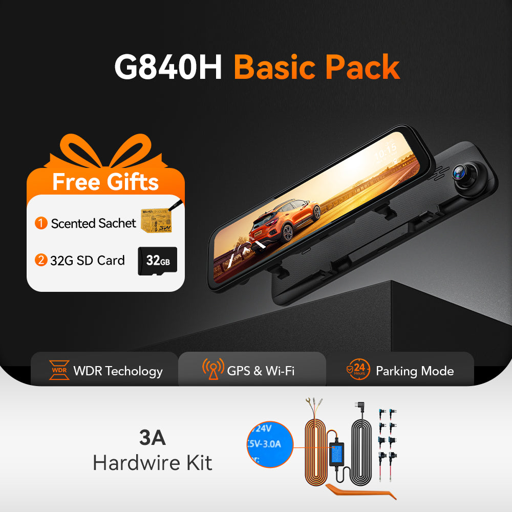 Wolfbox G840H mirror camera with a 12-inch wide mirror is an excellent car dashcam for recording your journey.