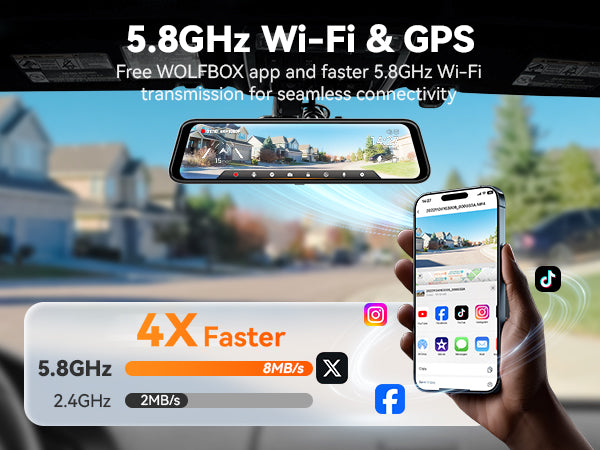 - High-Speed Connectivity: The G850Pro dash cam mirror features 5.8G high-speed 5.8GHz WiFi, allowing for rapid video downloads and easy access to your footage.