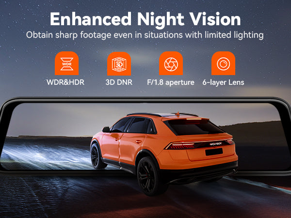 - Wolfbox G850Pro dash cam dual-screen recording: The G850Pro dash cam features dual-screen recording with front camera resolution at 4K/30fps and rear camera at 1080P/25fps, both supporting HDR for exceptional clarity.
