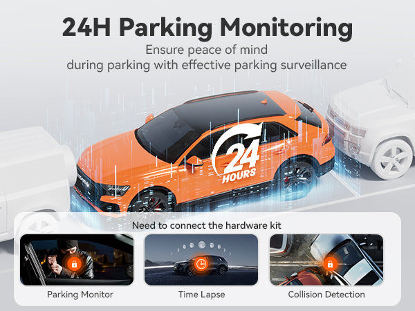 - Storage Capacity:The car dash camera includes a 64GB storage card and supports a maximum of 256GB of storage, providing ample space for recording up to 3.13 hours of continuous video.