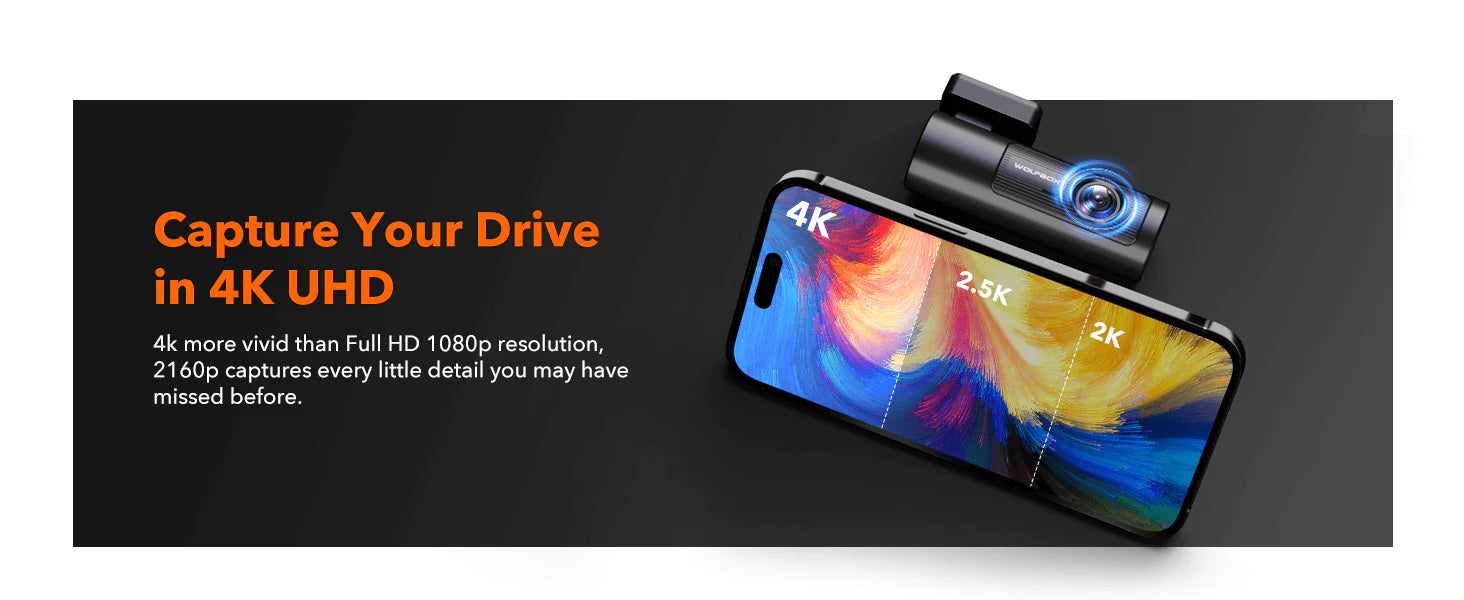i05 | WOLFBOX Dash Cam Front and Rear, 4K Dash Cam with GPS WiFi UHD 2160P/1600P + 1080P