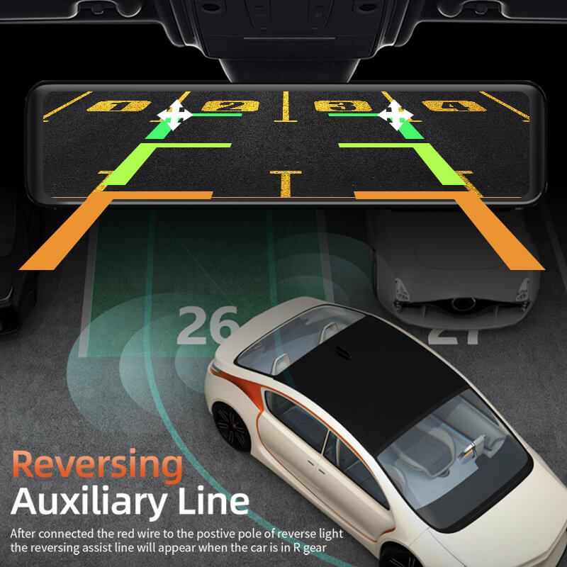 Loop recording will automatically overwrite the old files when the SD card is full. G-sensor detects a sudden collision and locks the collision footage, so dashcam with rear camera won't overwrite locked files; the Parking monitor functions as a surveillance camera system while the vehicle is off (need to be powered by a hardware kit).