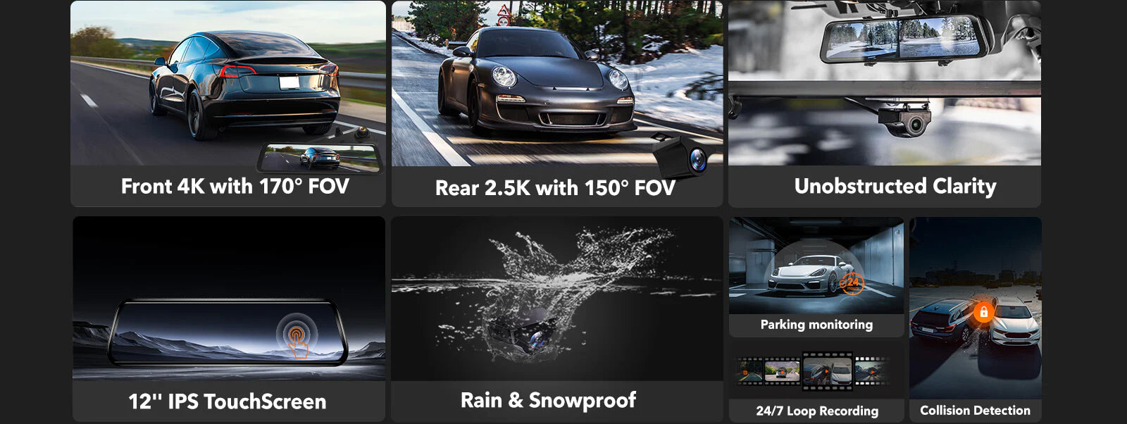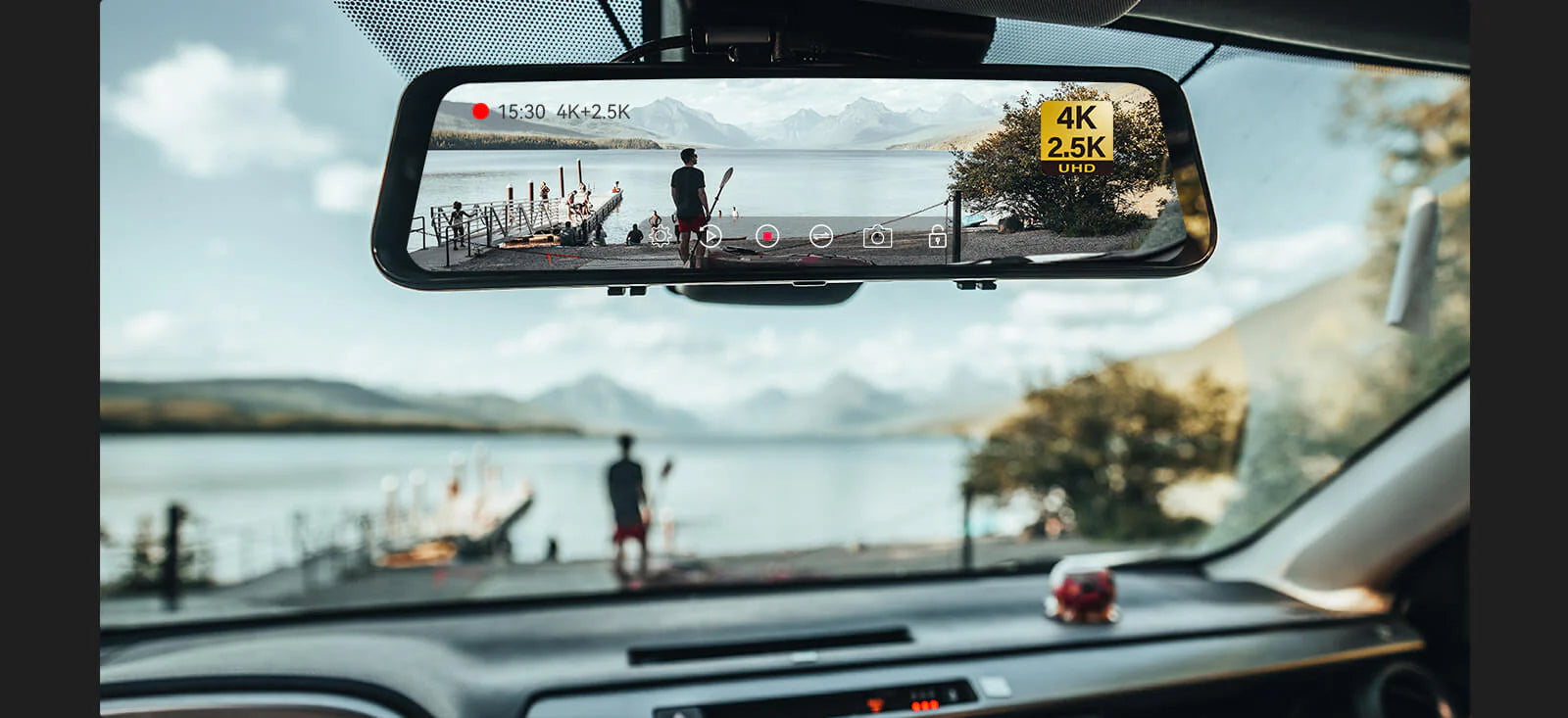 - Get the ultimate driving experience with G900 4K+2.5K dashcam featuring a large touchscreen display and rear view mirror cameras.