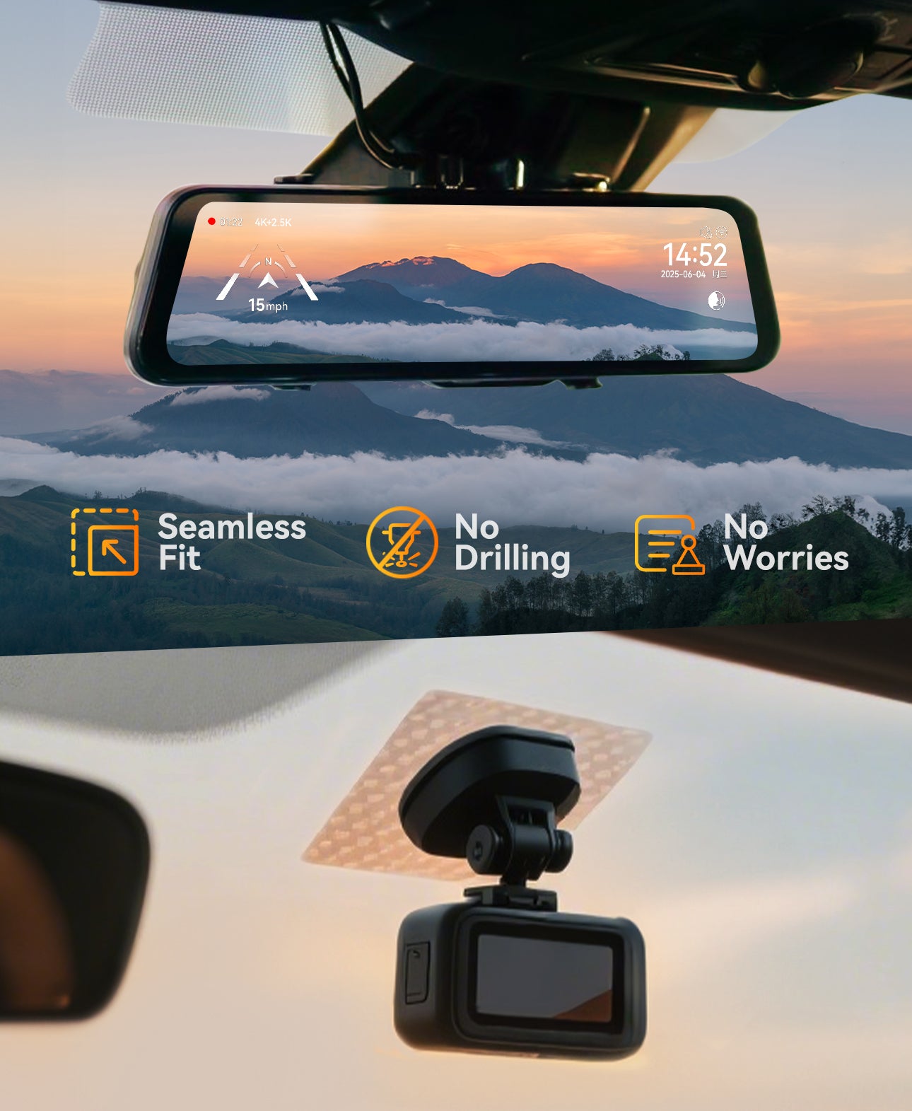 Designed to blend in with your original mirror—no bulky mounts, no visible cables, just clean integration.