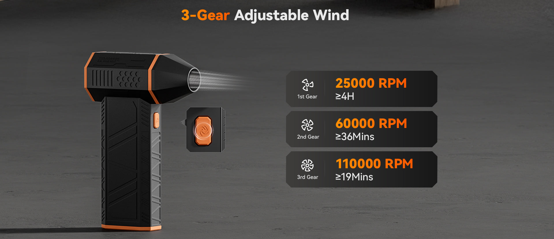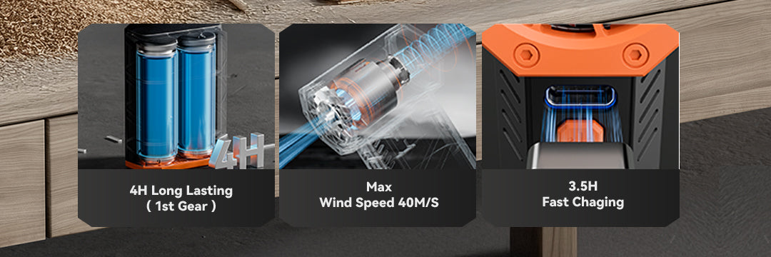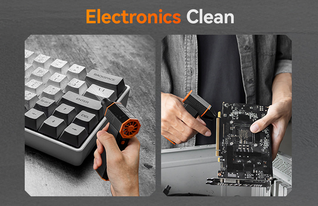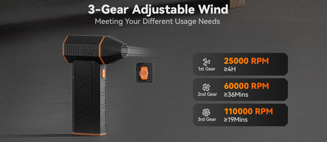 Experience next-level cleaning with the WOLFBOX MegaFlow50, featuring a high-speed motor that spins up to 110,000 RPM. From stubborn dust to fine debris, this electric air duster blasts through dirt with ease. Choose from three adjustable speed settings to suit everything from delicate electronics to heavier cleaning tasks.